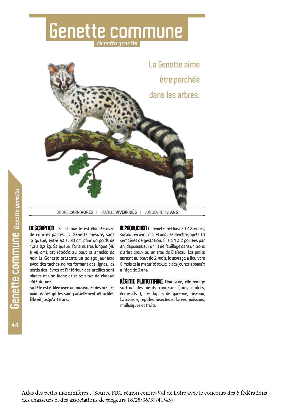 Atlas petits mammifères , (Source FRC région centre-Val de Loire avec le concours des 6 fédérations des chasseurs et des associations de piégeurs 18/28/36/37/41/45)